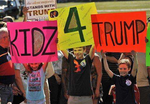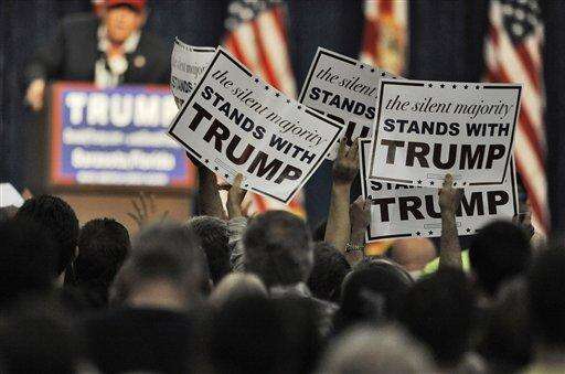 SARASOTA, Fla. (AP) - Republican presidential front-runner Donald Trump bragged about his high standing in the polls, slammed super political action committees and dismissed rivals Marco Rubio and Jeb Bush in a campaign stop Saturday in their home state of Florida.