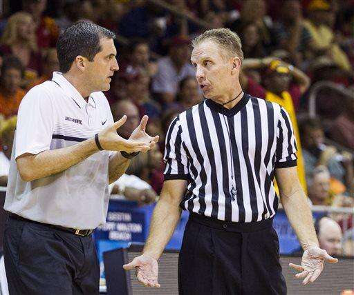 Iowa State head coach Steve Prohm talks to the referee in the first half of an NCAA college basketball game against Illinois during the Emerald Coast Classic in Niceville, Fla., Saturday, Nov. 28, 2015. (AP Photo/Mark Wallheiser) The Associated Press