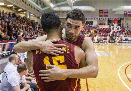 Iowa State's Georges Niang, right, celebrates with Nazareth Mitrou-Long during the closing seconds of an NCAA college basketball game against Illinois at the Emerald Coast Classic in Niceville, Fla., Saturday, Nov. 28, 2015. Iowa State defeated Illinois 84-73. (AP Photo/Mark Wallheiser) The Associated Press