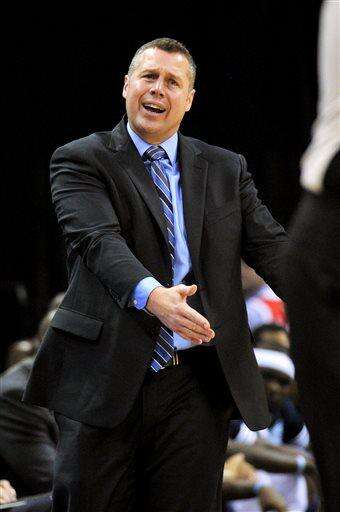 Memphis Grizzlies head coach David Joerger reacts to a referee call in the first half of an NBA basketball game against the Atlanta Hawks, Friday, Nov. 27, 2015, in Memphis, Tenn. (AP Photo/Brandon Dill) The Associated Press
