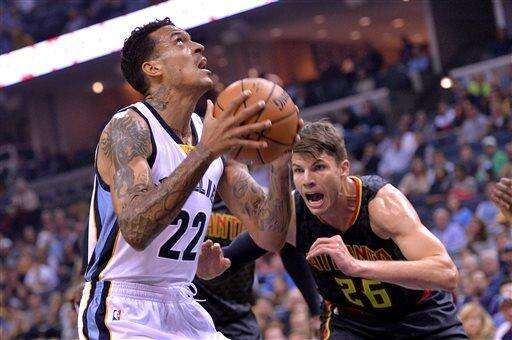 Memphis Grizzlies forward Matt Barnes (22) shoots against Atlanta Hawks guard Kyle Korver (26) in the first half of an NBA basketball game Friday, Nov. 27, 2015, in Memphis, Tenn. (AP Photo/Brandon Dill) The Associated Press