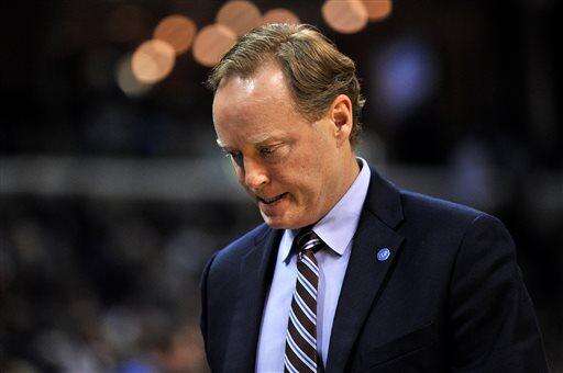 Atlanta Hawks head coach Mike Budenholzer reacts in the first half of an NBA basketball game against the Memphis Grizzlies, Friday, Nov. 27, 2015, in Memphis, Tenn. (AP Photo/Brandon Dill) The Associated Press