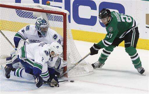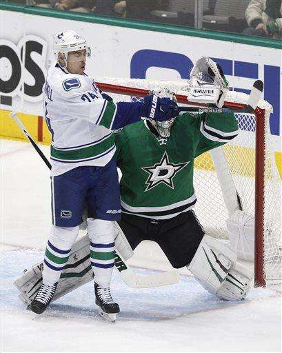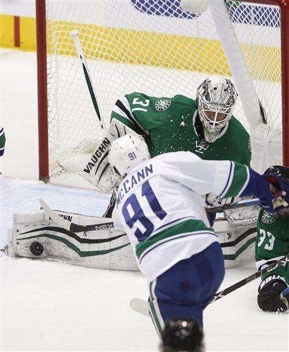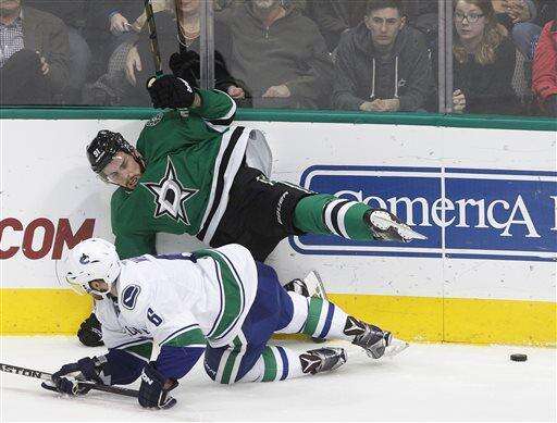 NOTES: Daniel Sedin's goal was the 15th of his career against Dallas. He and Benn extended their points streaks to seven games. Benn has seven goals and five assists during that time, and Daniel Sedin has six and six. ... The line of the Sedin twins and Hansen has totaled 39 points in the last nine games. ... Vancouver RW Adam Cracknell played in his 100th NHL game. ... In 10 career games against the Canucks, Seguin has 15 points (five goals, 10 assists). ... Miller played in his 20th game, tied for the most this season by an NHL goalie. ... The Stars have won nine in a row over Vancouver since Feb. 21, 2013 and are 2-0 this season.
