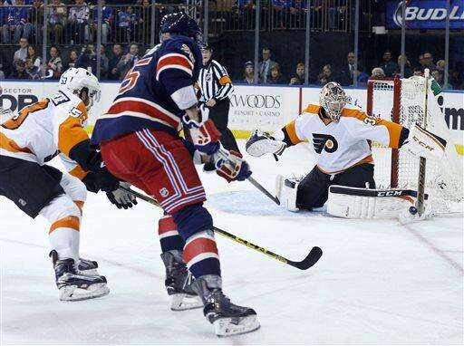 NOTES: New York played its first game without center Derek Stepan, who suffered two broken ribs in the Rangers' 4-3 loss to the Boston Bruins on Friday. New York coach Alain Vigneault reinserted Emerson Etem and Viktor Stalberg into the lineup, and had Kevin Hayes center a second line of Etem and Chris Kreider. ... Vigneault said New York would "have a better idea" Sunday how long Stepan will be out. He was scheduled to see a doctor Saturday. ... Philadelphia scratched Sam Gagner, Vincent Lecavalier and Brandon Manning. Dan Boyle was New York's lone scratch.