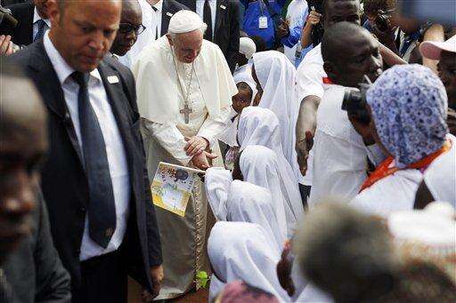 BANGUI, Central African Republic (AP) - Pope Francis made a historic visit to the last remaining Muslim neighborhood in Central African Republic's capital Monday, a move that almost immediately opened up a part of the divided city troubled for months by retaliatory violence between Muslim and Christian militias.