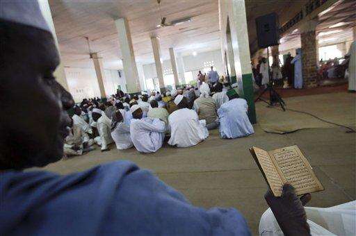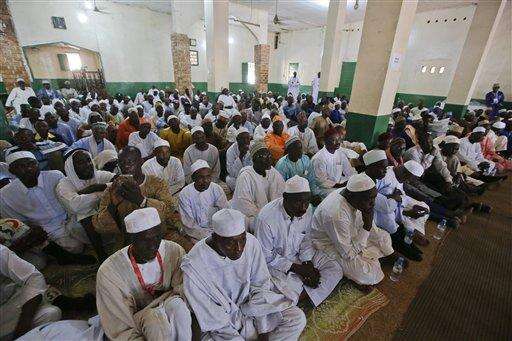 Men pray in the Koudoukou mosque, in Bangui, Central African Republic, as they wait for the arrival of Pope Francis for a meeting with the Muslim community at , Monday, Nov. 30, 2015. Pope Francis is in Africa for a six-day visit that is taking him to Kenya, Uganda and the Central African Republic. (AP Photo/Andrew Medichini)