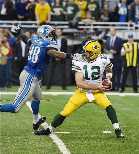DETROIT (AP) - The Detroit Lions closed in on Aaron Rodgers, and there was nobody nearby he could lateral to. A simple tackle would end the game, but Devin Taylor swing his hand up around the Green Bay quarterback's neck, making contact with the facemask.