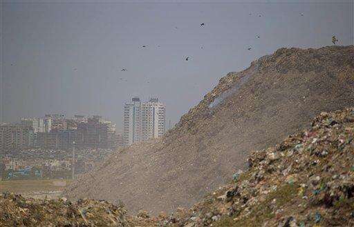 FILE - In this Tuesday, Aug. 26, 2014 file photo, smoke rises from garbage set on fire at a garbage dump on the outskirts of New Delhi, India. New Delhi city is imposing new rules to reduce its notoriously snarled traffic and fight extreme air pollution that has earned Indiaâs capital the title of world's most polluted city. (AP Photo/Saurabh Das, File)