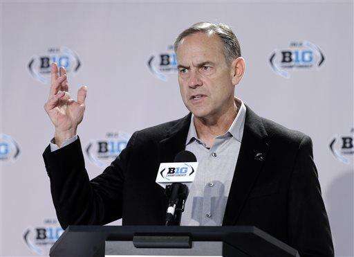 Michigan State head coach Mark Dantonio responds to a question during a news conference for the Big Ten Conference championship NCAA college football game Friday, Dec. 4, 2015, in Indianapolis. Iowa will play Michigan State Saturday for the championship. (AP Photo/Darron Cummings) The Associated Press
