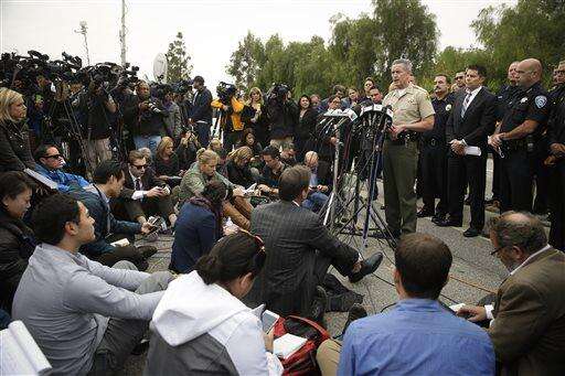 David Bowdich, head of the FBI's Los Angeles office, said "a number of pieces of evidence" point to terrorism and that the agency was focused on that idea "for good reason." He would not elaborate.