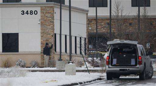 FILE --In this Sunday, Nov. 29, 2015, file photograph, a police investigators holds up measure while gathering evidence from the Friday shooting at a Planned Parenthood clinic in northwest Colorado Springs, Colo. In the wake of the deaadly shooting last Friday in Colorado Springs, clinics nationwide are redoubling security efforts. (AP Photo/David Zalubowski, file) The Associated Press