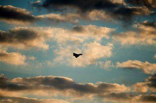 A British Typhoon warplane flies over RAF Akrotiri, a British air base near the coastal city of Limassol, Cyprus, Thursday, Dec. 3, 2015. British warplanes carried out airstrikes in Syria early Thursday, hours after Parliament voted to authorize air attacks against Islamic State group targets there. Eight more British jets arrived at RAF Akrotiri to join the attacks. (AP Photo/Pavlos Vrionides) The Associated Press