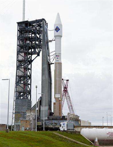 An unmanned Atlas rocket stood ready to lift off at sunset with 7,400 pounds of supplies for the International Space Station, representing the first U.S. delivery in months. But gusty wind interfered; launch controllers waited nearly a half-hour for the wind to ease, but it did not. Thursday's launch attempt was rained out.
