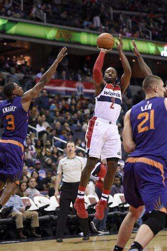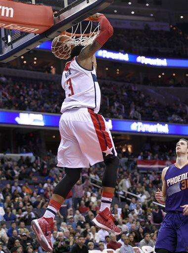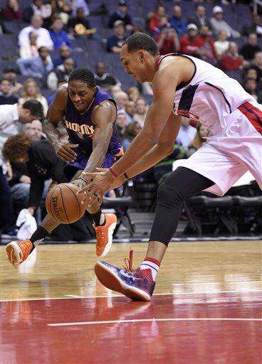 Wizards: Gortat will miss at least two games, the team said. ... Humphries (left ankle), Nene (left calf) and Gooden (right calf) were out. ... The small lineup outrebounded Phoenix 41-35.