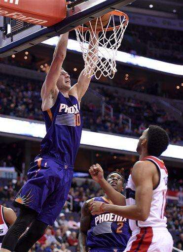 Suns: Center Tyson Chandler missed his fourth straight game because of a strained right hamstring. Coach Jeff Hornacek said that he hoped Chandler would return within the next few games. Morris returned after missing the Detroit game with a bruised left knee. ... P.J. Tucker had a season-high 13 rebounds.