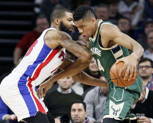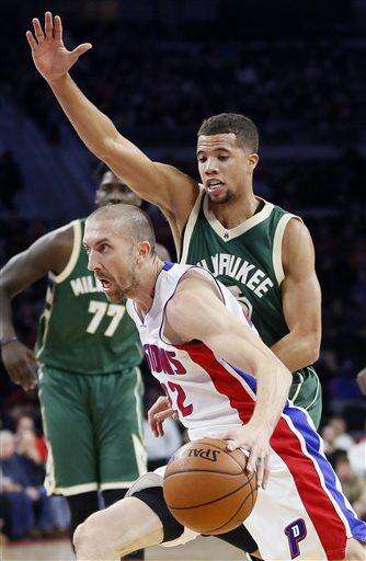 Detroit's Greg Monroe had 14 points and 13 rebounds against his former team. Another ex-Piston, Khris Middleton, led the Bucks with 21 points.