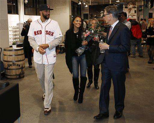 Boston Red Sox pitcher David Price leaves a news conference announcing his signing by the team, with principal owner John Henry, right, and Price's girlfriend, Tiffany Smith, at Fenway Park in Boston on Friday, Dec. 4, 2015. (AP Photo/Winslow Townson) The Associated Press