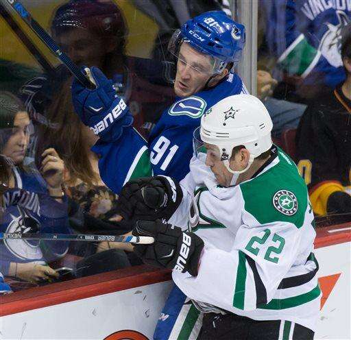 NOTES: The Canucks announced Wednesday that C Brandon Sutter will miss four to six weeks after undergoing surgery for a sports hernia. He hasn't suited up since Nov. 10. ... The Canucks continue a four-game homestand against on Saturday against Boston. ... The Stars visit Edmonton on Friday.