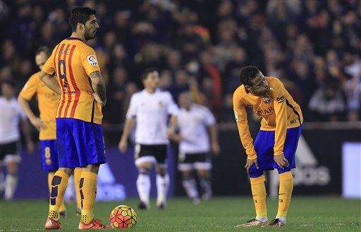 Barcelona opened the scoring at Valencia through Luis Suarez in the 59th, but young striker Santi Mina netted the equalizer with only a few minutes left in the game at the packed Mestalla Stadium.