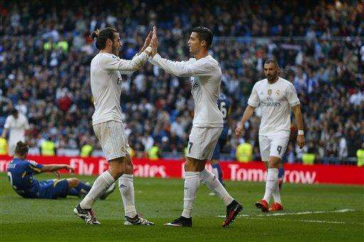 Benzema scored in the fourth and 16th minutes at the Santiago Bernabeu Stadium. Gareth Bale added a third in the 35th and Cristiano Ronaldo scored in the 38th to give Madrid a needed victory, one day after it was disqualified from the Copa del Rey for using a suspended player in the latest embarrassment to hit the Spanish powerhouse.