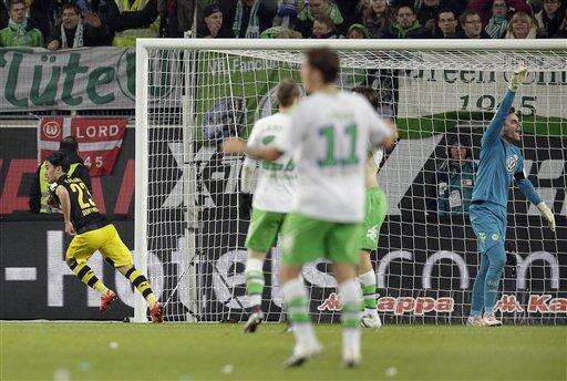 Wolfsburg's 29-game unbeaten run at home came to an end in dramatic fashion when Shinji Kagawa scored Borussia Dortmund's winner in the 93rd minute, two minutes after Ricardo Rodriguez had equalized on Saturday.