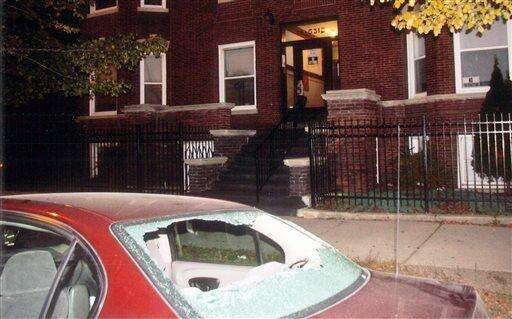 This Oct. 12, 2014 photo provided by the Cook County State's Attorney shows a car with a back window shot out by gunfire near the scene of a shooting where Ronald Johnson was killed in Chicago. Authorities announced Monday, Dec. 7, 2015 that a Chicago police officer will not be charged in the shooting death of Johnson, a 25-year-old black man, who authorities said was armed with a gun as he ran away from officers. Johnson was a passenger in back seat of the car behind the driver. (Cook County State's Attorney via AP)