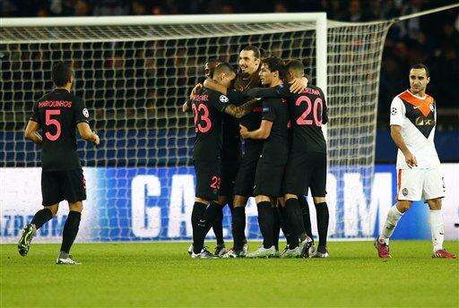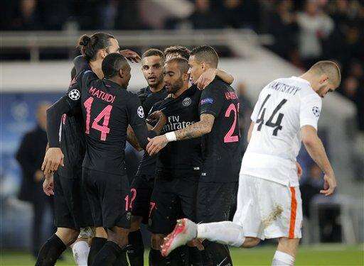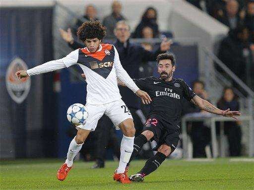 PARIS (AP) - Zlatan Ibrahimovic and Lucas set each other up for goals as Paris Saint-Germain beat Shakhtar Donetsk 2-0 in their final Champions League group game on Tuesday.