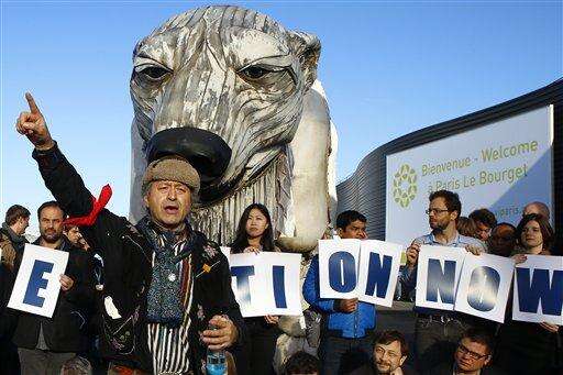 They're part of a push by the activist group Avaaz for governments to abandon oil, gas and coal in favor of renewable energy. That's one of the sticking points in the Paris talks, which run through Friday.