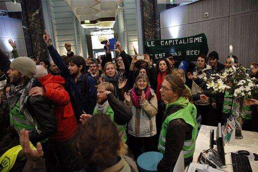 Activists dressed as Yoda and Storm Troopers appeared at the Paris climate conference Wednesday in one of many authorized protest stunts around the talks.