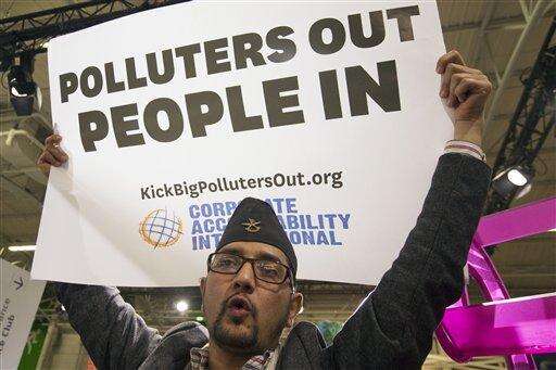 Activists from Greenpeace rolled the bear into the conference venue Wednesday morning. It's among many scattered protest actions around the two weeks of talks.