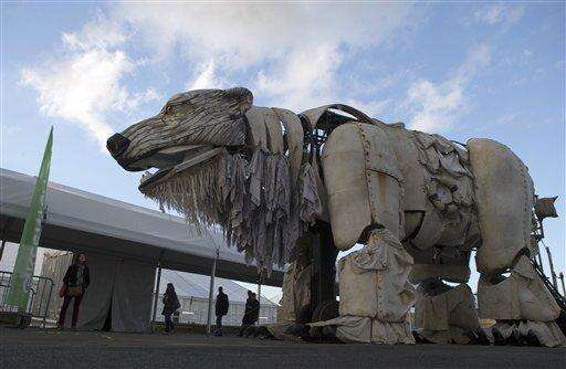 The Paris climate talks have a new visitor: a two-story-high, mechanically operated polar bear.