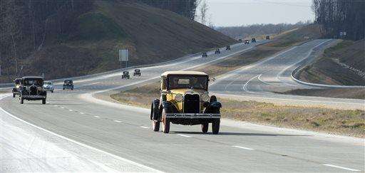 Gov. Mike Pence drove a transportation department pickup truck through a ribbon stretched across the roadway, followed by a caravan. The section was opened to the public a short time later and is the fourth part of the planned 142-mile Evansville-to-Indianapolis highway to be completed.