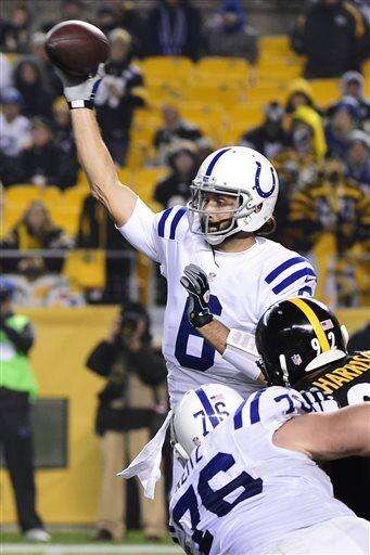 Matt Hasselbeck, Luck's replacement, won his first four starts. But he looked more like a 40-year-old backup quarterback in Sunday night's embarrassing 35-point loss at Pittsburgh. He threw two interceptions, was sacked twice and took two awkward hits that left him with a stiff neck and a mild rib separation.