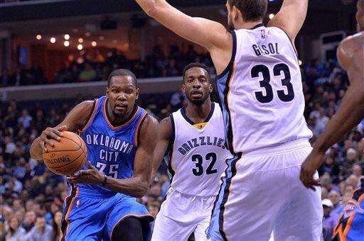 Durant scores 32 as Thunder beat Grizzlies 125-88