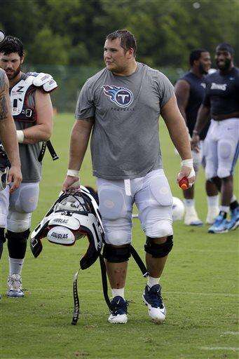 FILE - In this Aug. 11, 2015, file photo, Tennessee Titans center Brian Schwenke leaves the field after a practice during NFL football training camp, in Nashville, Tenn. Before 2011, NFL coaches could put players in pads for practice as much as they wanted. Linebacker Wesley Woodyard and his Titans teammates have been counting down to their final padded practice Wednesday under the current labor deal that limits the pads to just three practices over the final six weeks each season. (AP Photo/Mark Humphrey, File) The Associated Press