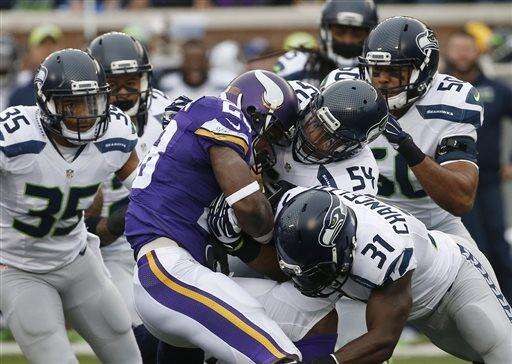 Expect the Vikings to give Adrian Peterson the ball a bit more last week. The NFL's leading rusher with 1,182 yards this season managed just 8 in nine carries as Minnesota abandoned the running game after falling far behind Seattle early.