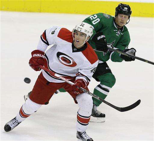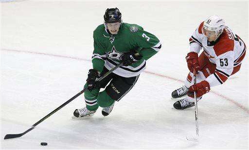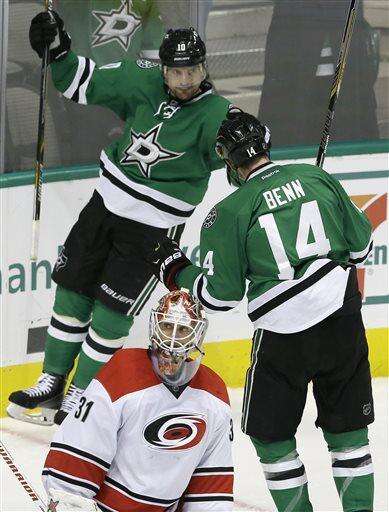 NOTES: The Stars had blown four-goal leads in the third period only twice before in their 29 seasons in Dallas. The last was Nov. 10, 2007, at Los Angeles, when the Kings scored four times in just 3:13 and won 6-5 in overtime. ... In 10 career games against Carolina, Benn has 15 points (seven goals, eight assists). The Hurricanes' Eric Staal has played 14 games vs. Dallas, with 15 points (nine and six). ... Slavin, playing his ninth game, and Di Giuseppe his third, both scored their first goal of the season. ... The Stars were 0 for 11 on the power play during their four-game trip. ... Stars D Jason Demers (upper-body injury) missed his third straight game. ... Dallas swept both games of the season series by a combined score of 10-6.