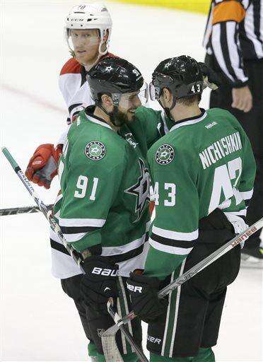 Dallas' Jamie Benn scored his league-leading 19th goal and added three assists. He combined with linemantes Tyler Seguin (goal, 3 assists) and Valeri Nichuskin (goal, 2 assists) for three goals and eight assists. Patrick Eaves and Johnny Oduya also scored, and Klingberg also had three assists.