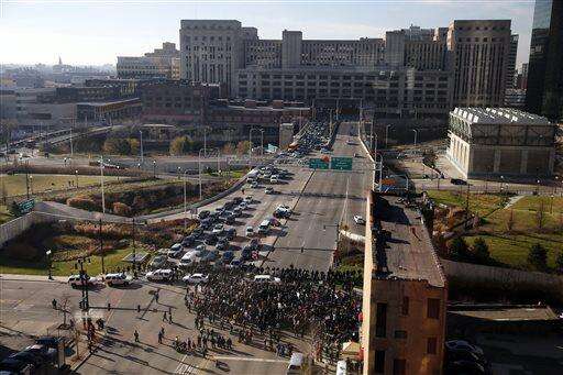 Protesters block the interstate highway traffic coming into downtown Chicago, Wednesday, Dec. 9, 2015, after Mayor Rahm Emanuel apologized for the 2014 shooting of a black teenager during a special City Council meeting. Emanuel criticized the police department for being quick to shoot, saying the department's "supervision and leadership" had failed. (AP Photo/Kiichiro Sato) The Associated Press