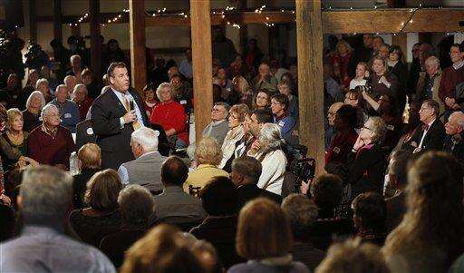 Republican presidential candidate New Jersey Gov. Chris Christie speaks to a packed barn during a campaign stop Friday, Dec. 11, 2015, in Wolfeboro, N.H. (AP Photo/Jim Cole) The Associated Press