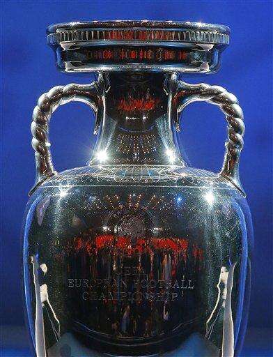The European soccer championships trophy is put on display before the Euro 2016 draw in Paris Saturday, Dec. 12, 2015. (AP Photo/Michel Euler) The Associated Press