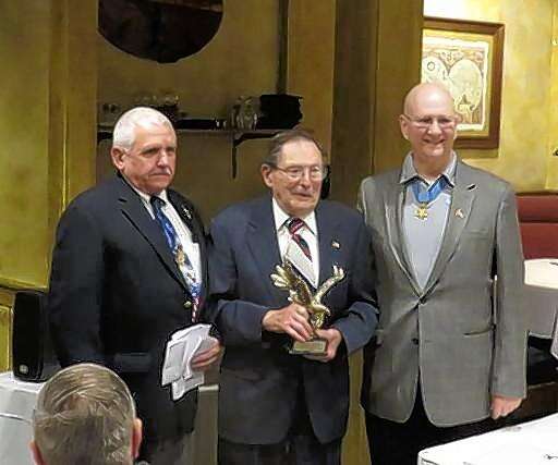 VAC President Nick Konz and Medal of Honor recipient Allen Lynch present the Eagle Award to previous VAC president Norm Arnswald for eight years as president and 40 years of service to the Veterans Assistance Commission. Courtesy of the Veterans Assistance Commission of Lake County