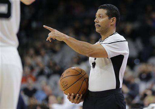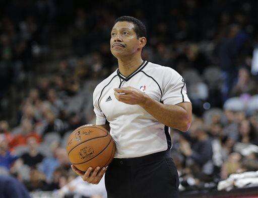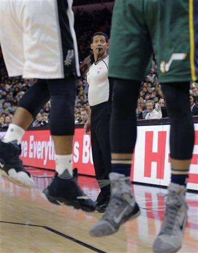 NBA referee Bill Kennedy (55) during the second half of an NBA basketball game between the San Antonio Spurs and Utah Jazz, Monday, Dec. 14, 2015, in San Antonio. Kennedy has told Yahoo Sports he is gay after Sacramento Kings guard Rajon Rondo directed a gay slur at him during a game. Kennedy tells Yahoo he is "proud to be an NBA referee and I am proud to be a gay man," adding that he chose to come out in hopes of sending a message "that you must allow no one to make you feel ashamed of who you are." (AP Photo/Eric Gay) The Associated Press