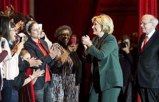 OMAHA, Neb. (AP) - With billionaire investor Warren Buffett looking on, Democratic presidential candidate Hillary Clinton said Wednesday she wants to raise taxes on the wealthy and expand upon the so-called "Buffett rule" pushed by the Obama administration to raise tax rates on the richest Americans.