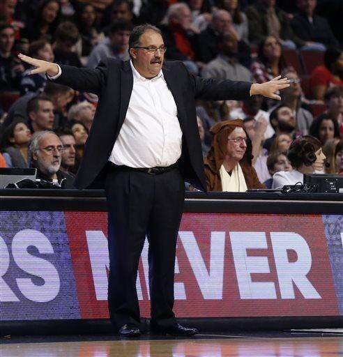 Detroit Pistons head coach Stan Van Gundy directs bios team during the first half of an NBA basketball game against the Chicago Bulls, Friday, Dec. 18, 2015, in Chicago. (AP Photo/Charles Rex Arbogast) The Associated Press