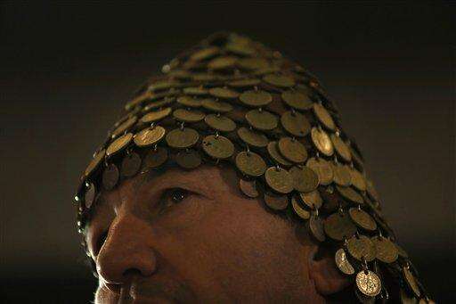 A man wearing a costume made of coins watches the Spanish Christmas lottery draw known as "El Gordo" or "The Fat One" in Madrid, Tuesday, Dec. 22, 2015. Celebrations were guaranteed Tuesday in the southern beach town of Roquetas de Mar where tickets bearing the top prize number of 79140 in Spain's Christmas lottery, "El Gordo" were sold. The number appeared on 1,600 tickets, known as âdecimosâ (tenths) with each holder winning euro400,000 ($434,800). The tickets are usually sold in many different lottery sales points making it virtually impossible to win the entire euro640 million ($696,346,000) assigned to the top prize number. (AP Photo/Francisco Seco)