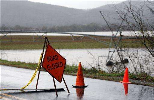 State officials say there have been more than 200 road closures statewide because of the storms, as well as more than 30 water rescues.