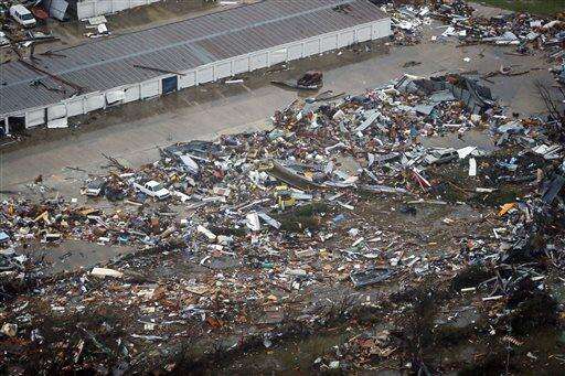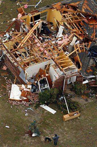 This aerial photo shows damage after a tornado ripped through the area, Monday, Dec. 28, 2015 in Glenn Heights Texas. Residents surveyed the destruction from deadly tornadoes in North Texas as the same storm system brought winter woes to the Midwest on Monday, amplifying flooding that's blamed for more than a dozen deaths and prompting hundreds of flight cancellations. At least 11 people died and dozens were injured in the tornadoes that swept through the Dallas area Saturday and caused substantial damage. (G.J. McCarthy/The Dallas Morning News via AP) MANDATORY CREDIT; MAGS OUT; TV OUT; INTERNET USE BY AP MEMBERS ONLY; NO SALES