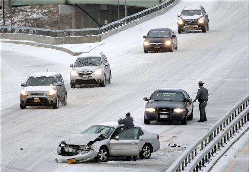 Drivers in New England certainly didn't miss this: Snow, sleet and freezing rain that are covering the region for the first time this season are sending cars and trucks spinning off roadways.
