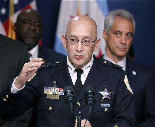 Chicago Police Superintendent John Escalante, left, responds to a question as mayor Rahm Emanuel, right, listens, during a news conference about new police procedures on Wednesday, Dec. 30, 2015, in Chicago. Emanuel says every Chicago police patrol car will be equipped with a Taser following a series of high-profile shootings by officers. (AP Photo/Charles Rex Arbogast) The Associated Press